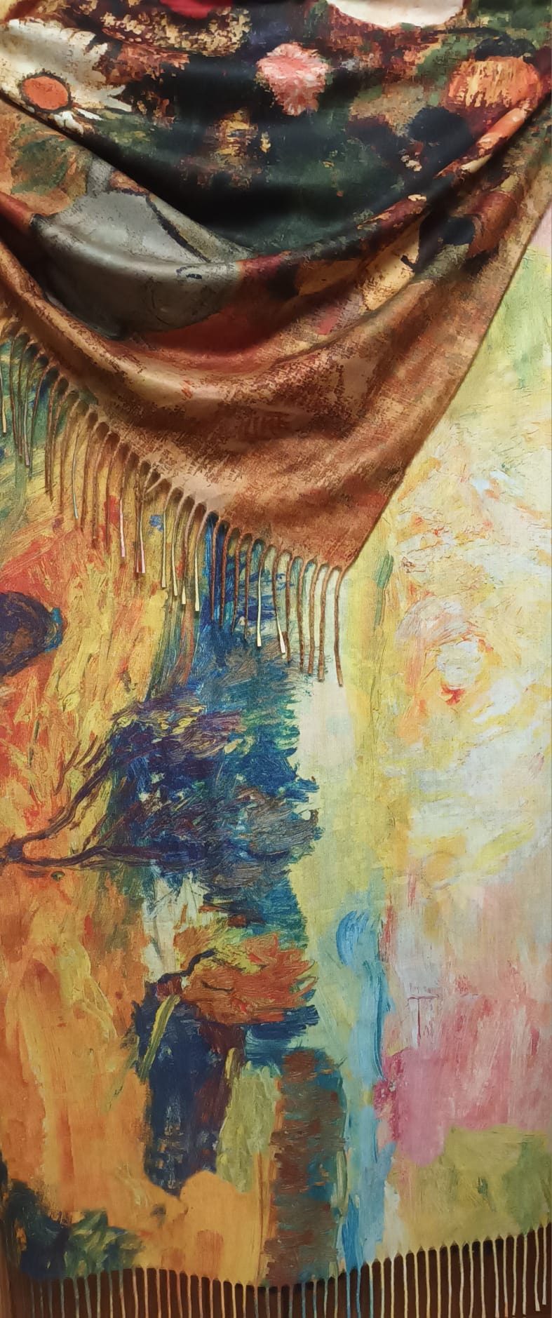 Eșarfă din cașmir cu picturi cu două fețe diferite